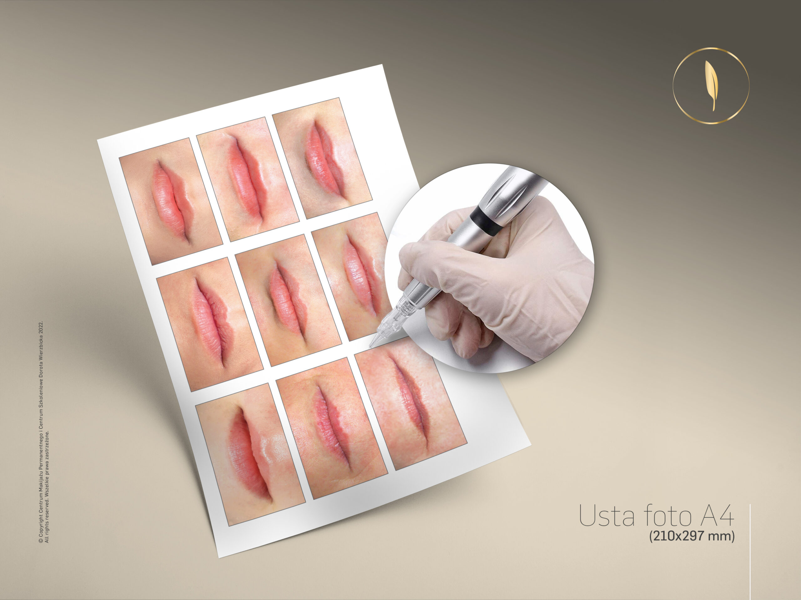 Skórka szkoleniowa do ćwiczeń makijażu permanentnego. Bardzo dobrze imitująca ludzką skórę, pomocna przy nauce i utrwalaniu technik makijażu permanentnego. Druk ekologiczny wysokiej jakości. Format A4 (210 x 297 mm).